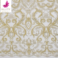 ผ้าลูกไม้เจ้าสาวสีขาวพร้อมลูกปัดผ้าทูลสำหรับชุดแต่งงานคอลเลคชั่น HY1829ดีไซน์แบบแฟชั่น
